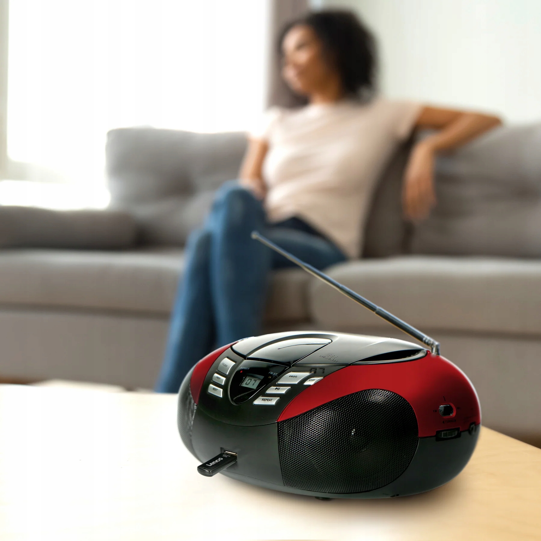 Boombox Portable Stereo Radio CD MP3 Radio FM USB Red