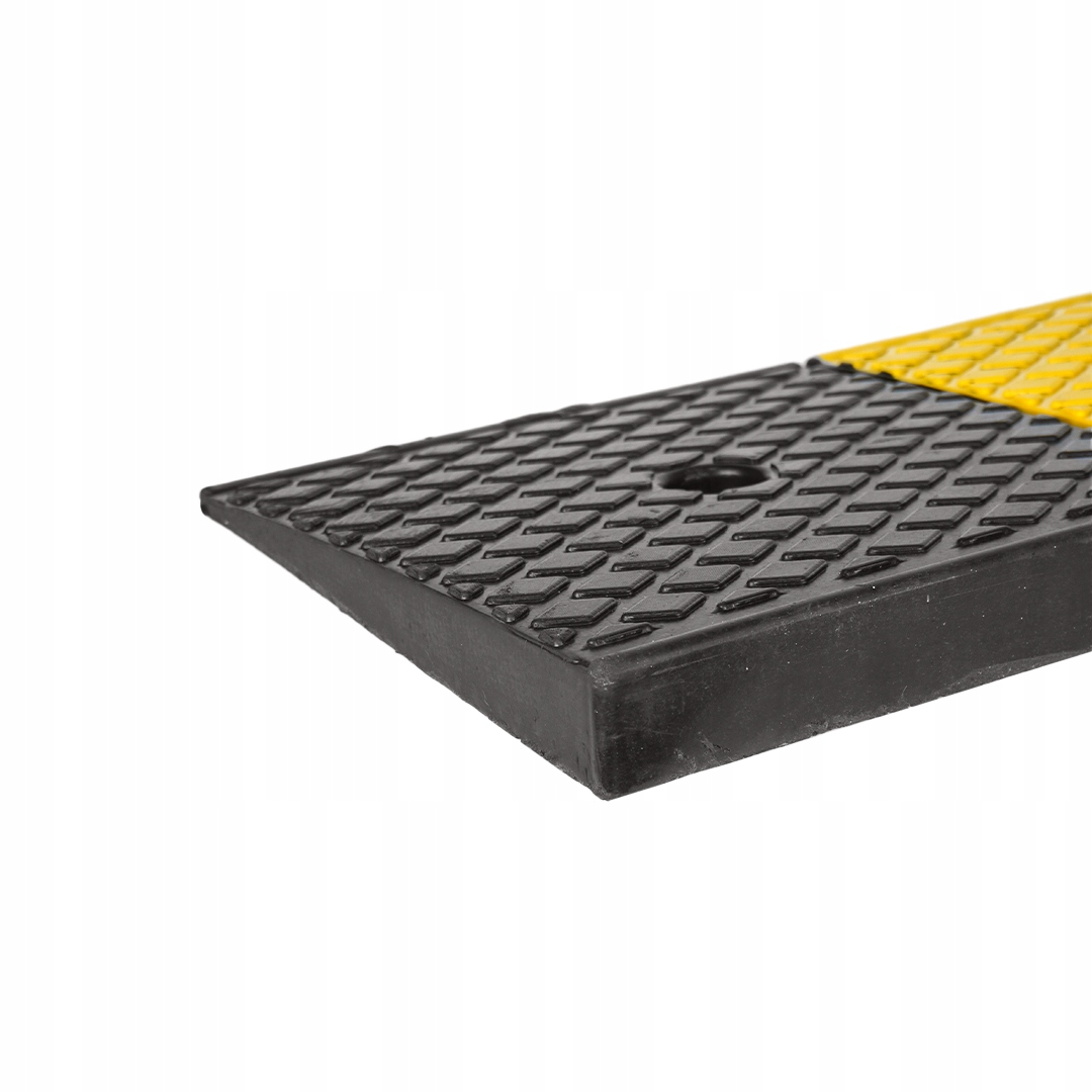 Пандус виготовлений із твердої гумової суміші, що робить його дуже міцним та стійким до деформації. Пандус пофарбований у два кольори, жовтий і чорний, що дозволяє помітити вторгнення навіть вночі.