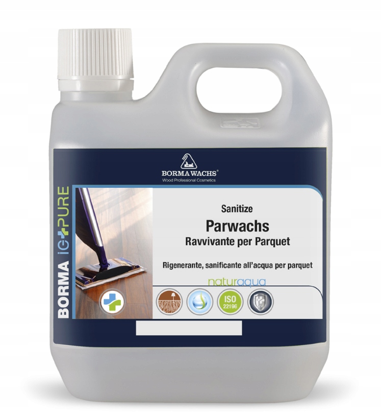 Це воскова емульсія без розчинників, призначена для захисту та відновлення пошкодженої паркетної підлоги. Поєднання натуральних восків і поверхнево-активних речовин забезпечує приємний блиск і стійкість до частих рухів. Ідеально підходить для захисту промаслених і лакованих дерев'яних підлог. Через високий вміст твердих частинок рекомендується уникати нанесення надмірних кількостей, щоб уникнути можливого розшарування. Гарантує тривалий антибактеріальний ефект завдяки контрольованому вивільненню іонів срібла, укладених у неорганічні кристали з наноструктурою.Доступний у класичній глянсовій та матовій версії - природний ефект. Приблизна ефективність: 60-70 м² / л.