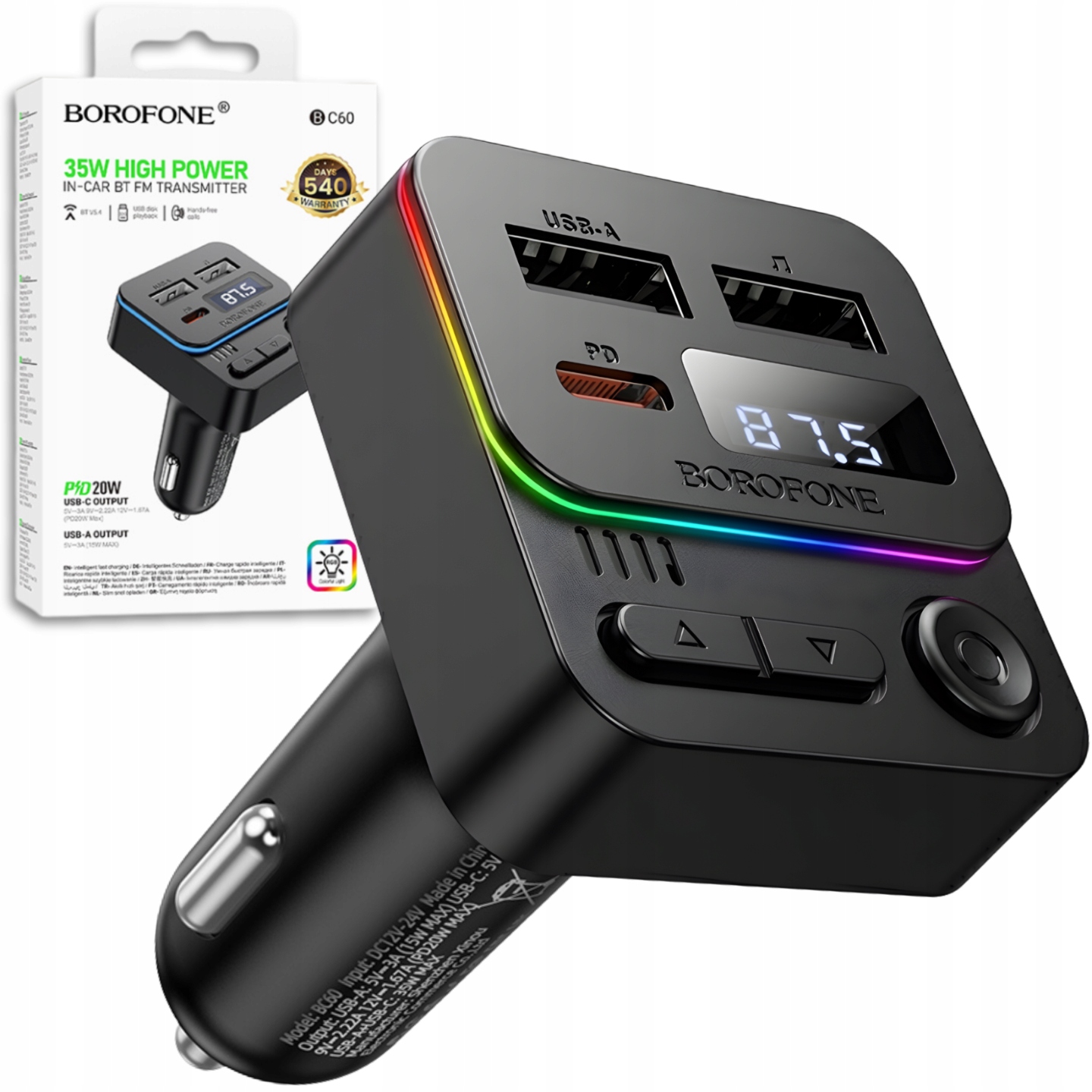 Borofone BC60 MP3 Bluetooth автомобільний FM-трансмітер 2xUSB + USB-C PD 20W
