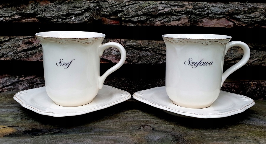Польська кераміка у вигляді двох витончених кухлів для: кави, чаю, теплого молока з медом або навіть желе, споживаного разом.