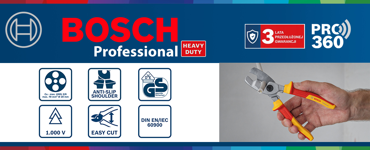 bosch важкий обов'язок - потужність, ефективність та міцність у новому внеску! Механізм важеля - вдосконалений механізм важеля забезпечує зручну роботу завдяки 30% меншим зусиллям, яке користувач вкладає в різання матеріалу, порівняно зі стандартною комбінекекохроною проти паралічу з паралічу. 1000 В - перевірка інструменту під час роботи під напругою до 1000 В