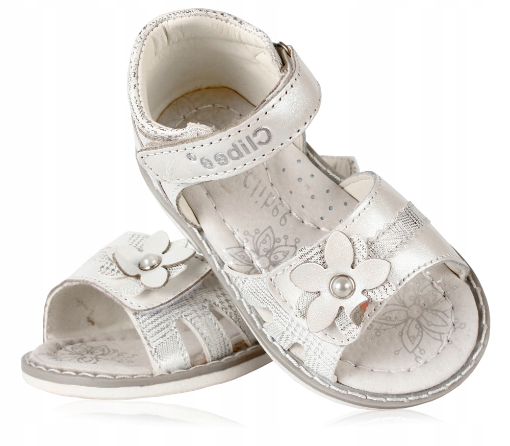 Босоніжки білі квіткові профільовані шкіряні clibee 21