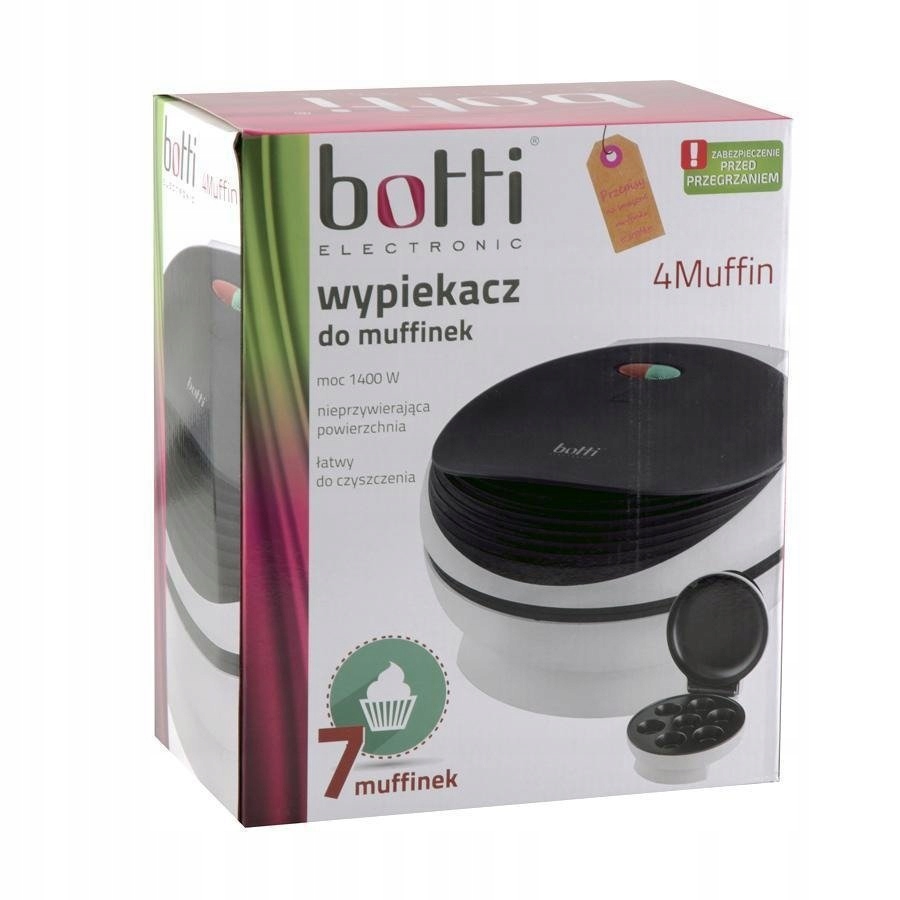 Сучасна мафінниця Botti створена для швидкого приготування смачного десерту для всієї родини, тому має високу потужність - 1400 Вт і можливість запікання. до семи кексів одночасно! Для забезпечення безпечного використання виробник використав низку рішень, таких як захист від перегріву та теплоізоляційний корпус і ручка. Антипригарне покриття полегшує очищення.