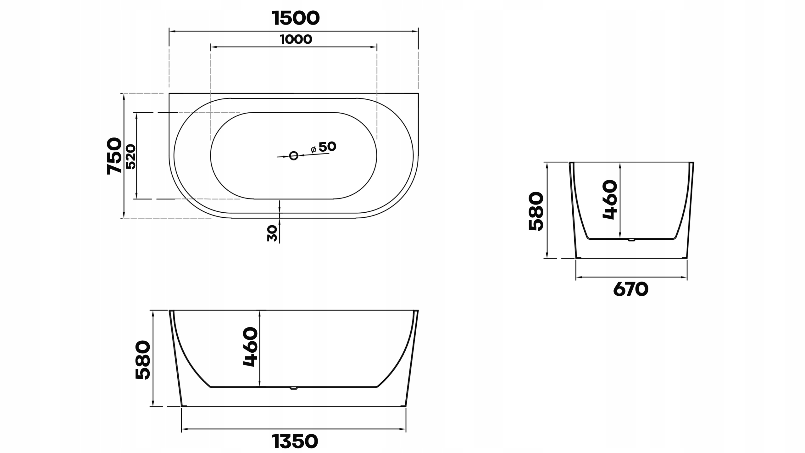 BRAIDER Ванна окремо стояча RESTIA симетрична 150см. Білий