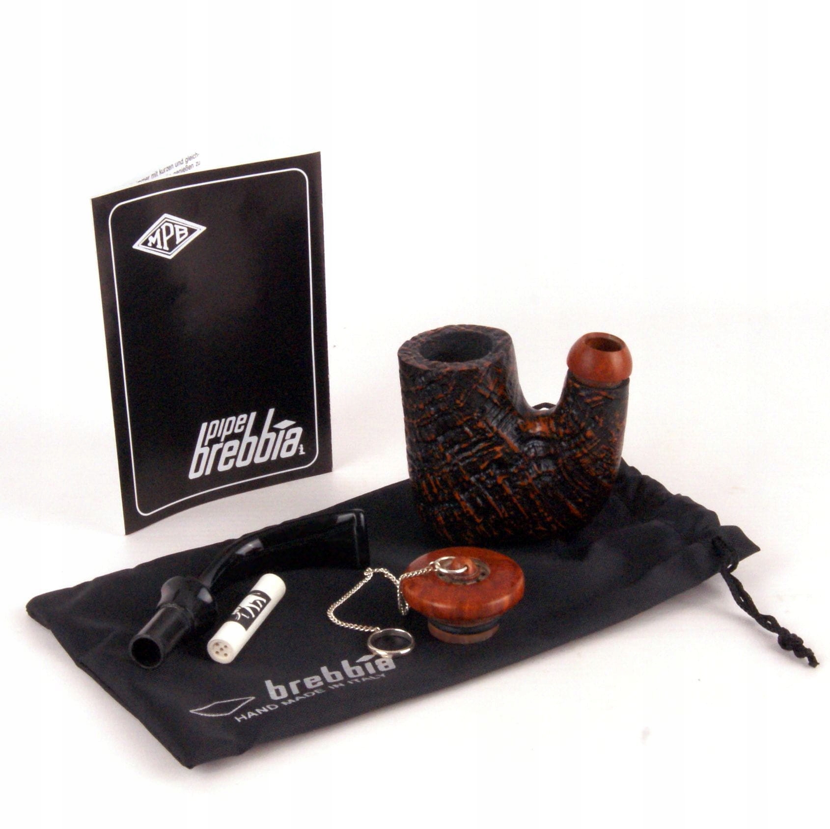 Абсолютно унікальна люлька типу "Oom Paul", ручна робота з шипшини італійської майстерні Brebbia. Масивна головка труби здебільшого піддається піскоструминній обробці. Винятком є кінець горловини і шапка. У самій кришці є отвори для куріння «закритої» трубки, гумова прокладка та елегантне кріплення та ланцюжок зі срібла 925. Примітна димова трубка з т.зв. «криве свердло». Акриловий мундштук з місцем для абсорбуючого фільтра 9 мм, з логотипом бренду. Місткий, передкарбонований камін. У комплект входить тканинний чохол і фірмова коробка. Жива люлька справляє дивовижне враження і, безумовно, стане цінним доповненням до колекції будь-якого курця.