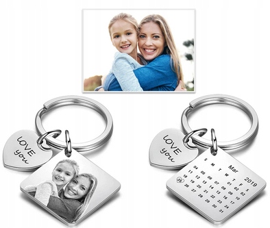 Брелок для ключів КОХАННЯ ДАТА ГРАВІРУВАННЯ ФОТО СЕРЦЕ КАЛЕНДАР