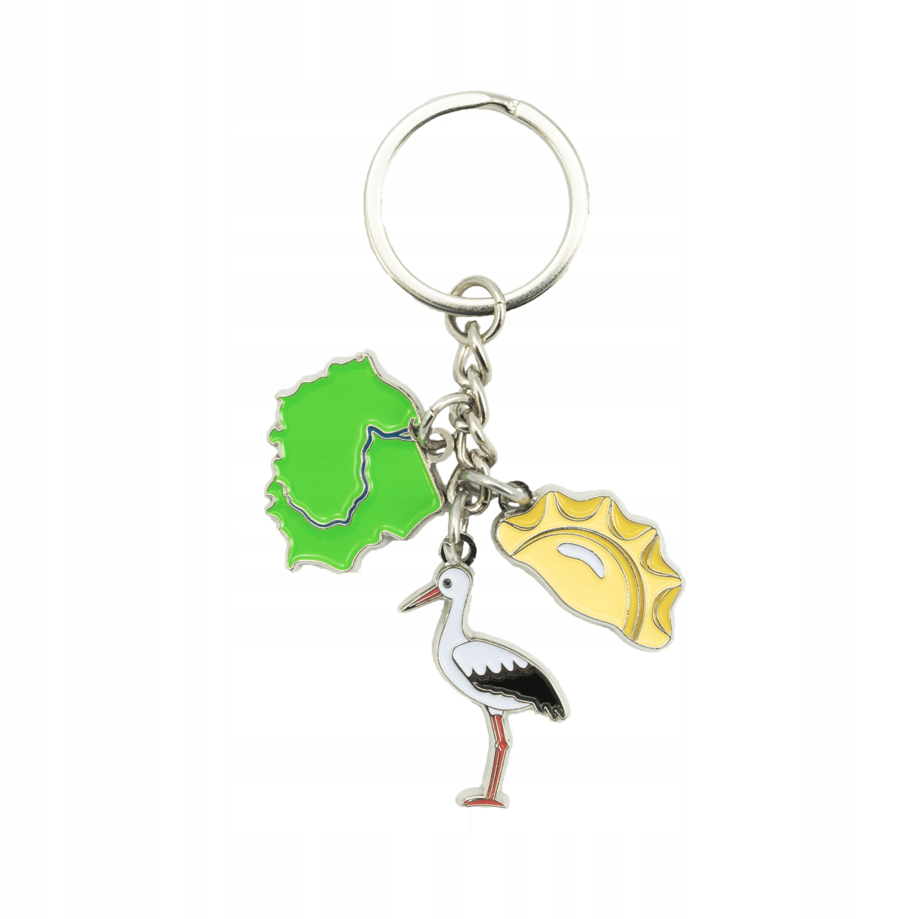 Металевий брелок із цими трьома емалевими символами напевно принесе багато радості тим, хто сумує за країною над Віслою, любить польські вареники та види лелек у свої гнізда. Чи знаєте ви, що в Польщі гніздиться кожен четвертий лелека?
