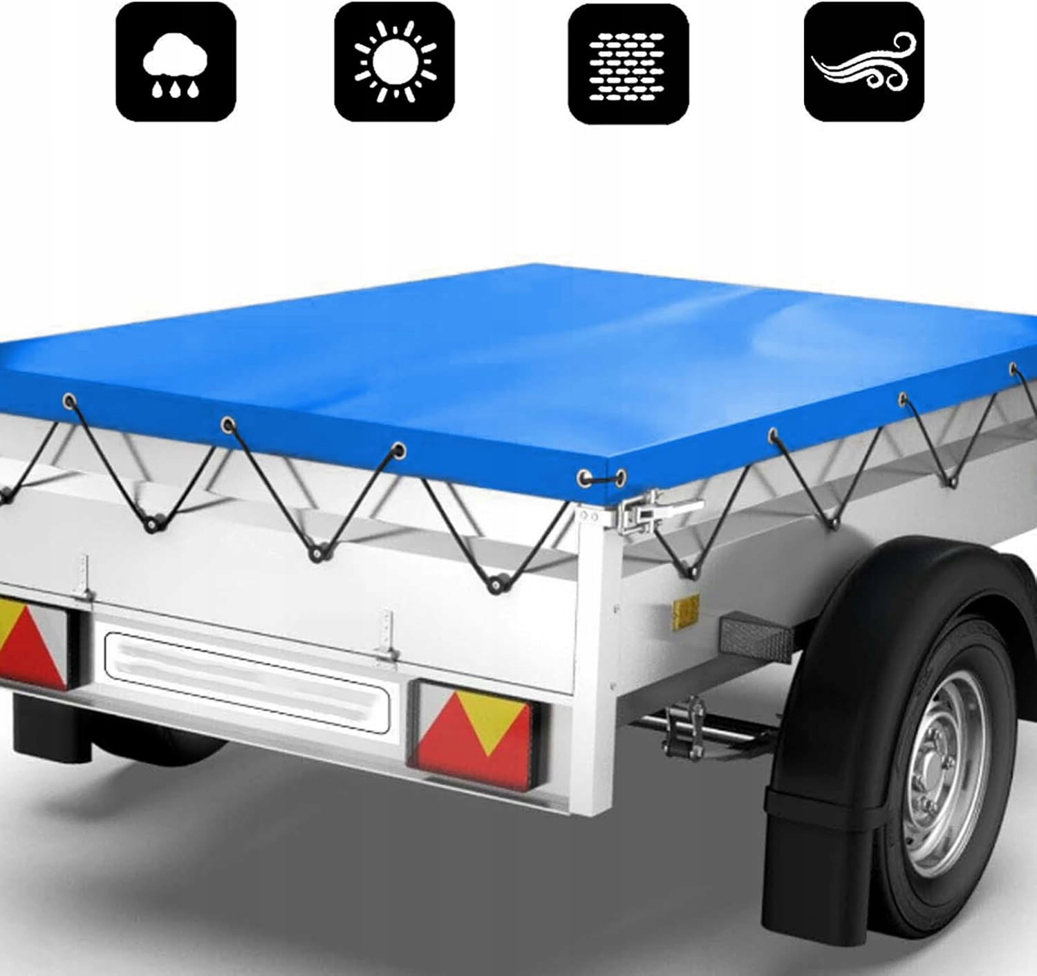 Загальний розмір брезенту становить 209 * 134 * 5 см, Тарпаулін причепа заввишки 9 см, що забезпечує суворий підходить до причепа під час руху, безпечно покриває причіп, водонепроникний, снігостійкий, пилозахисний, стійкий до сонця, Підтримує простір коробки передач причепів повністю сухий!