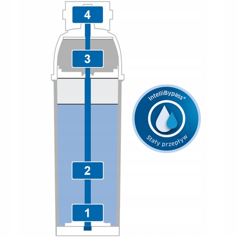 Унікальна технологія IntelliBypass дозволяє підтримувати постійну воду високої якості, незалежно від обсягу потоку води з байпаса. Це також трапляється, коли тиск води низький.
