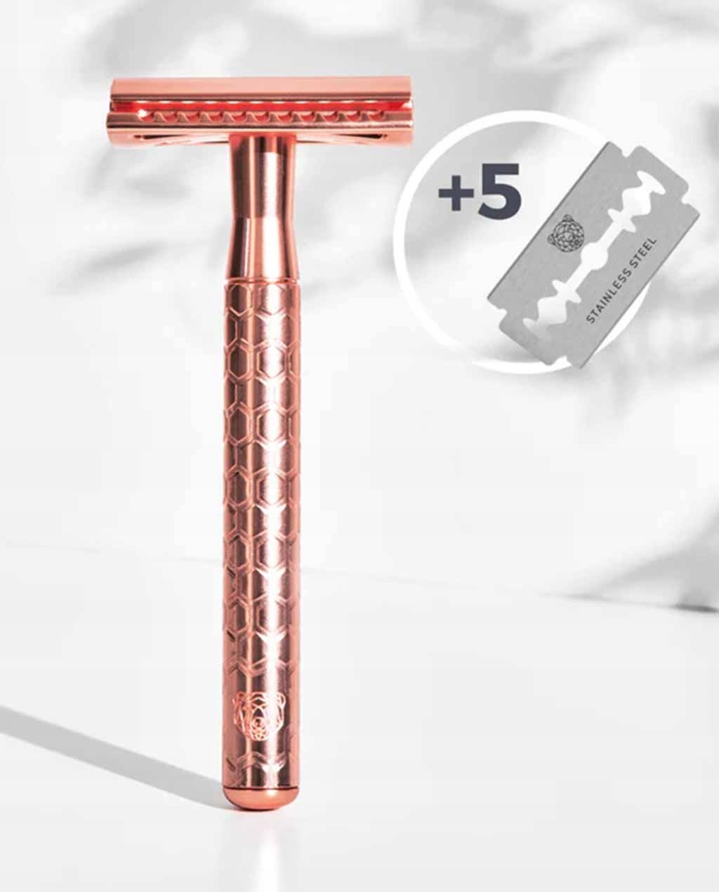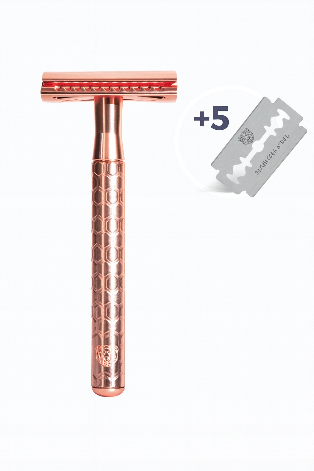 Відкрийте для себе унікальну бритву WLDOHO MINOUK з рожевого золота, яка поєднує елегантність із турботою про довкілля. Виготовлений із металу та міцного цинкового сплаву, він забезпечує точне та гладке гоління без подразнення. Це ідеальна альтернатива одноразовим поліетиленовим пакетам — міцний, стильний і безпечний для природи.