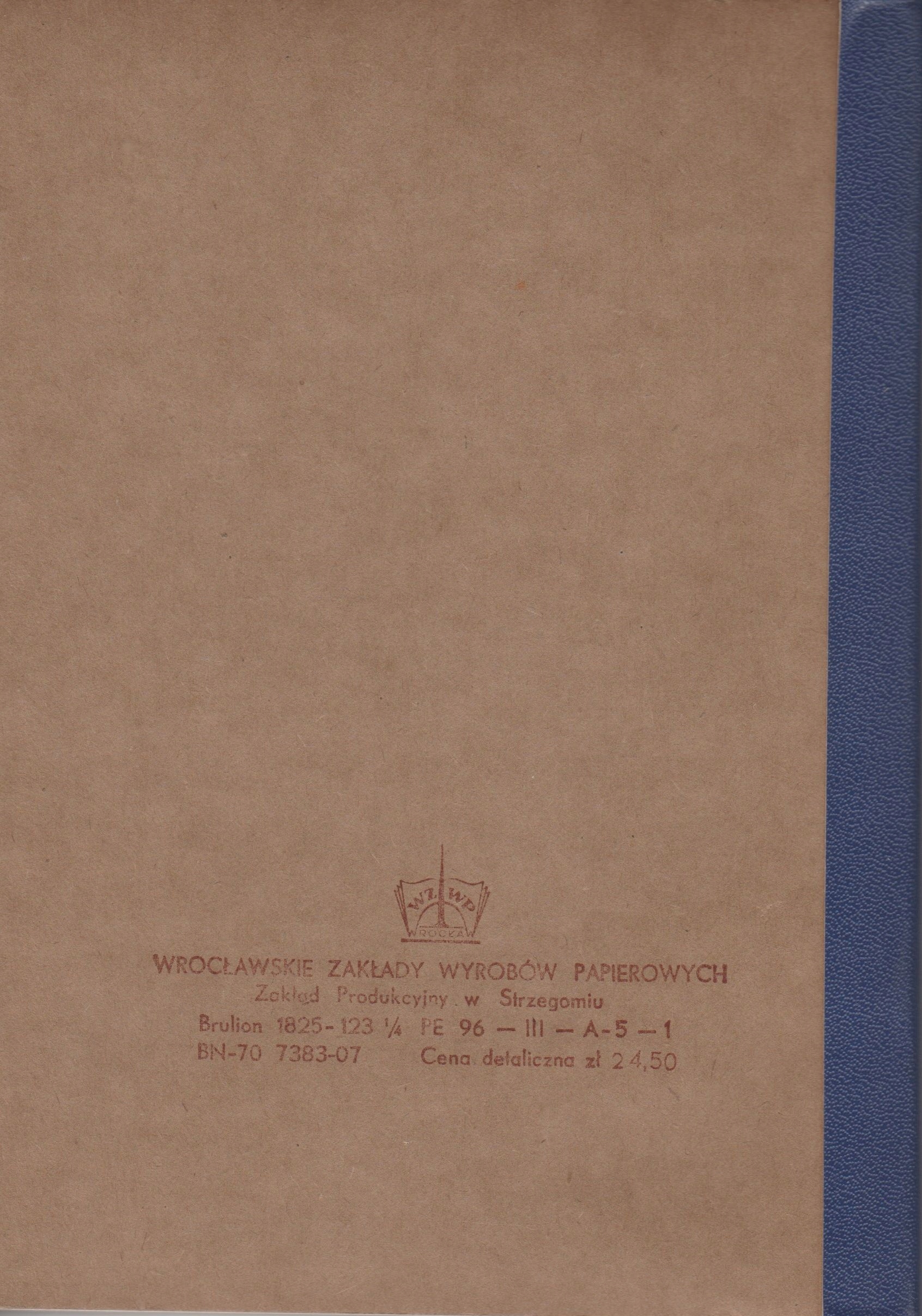 Ноутбук, що зберігається в ідеальному стані, виробленому Wrocław Paper Products. Він ніколи не був широко відкритий, про що свідчить відсутність вигинів на картках всередині та на обкладинці зовні. Дорн Краї сторінок. Чудовий стан