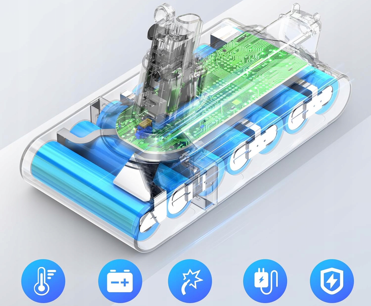 Багатоступеневий захист: інтелектуальна технологія з вбудованим захистом від ударів контролює та балансує окремі елементи, захищає від перезаряджання, надмірного розрядження, перенапруги та перегріву, забезпечує захист від короткого замикання та захист від постійної напруги.