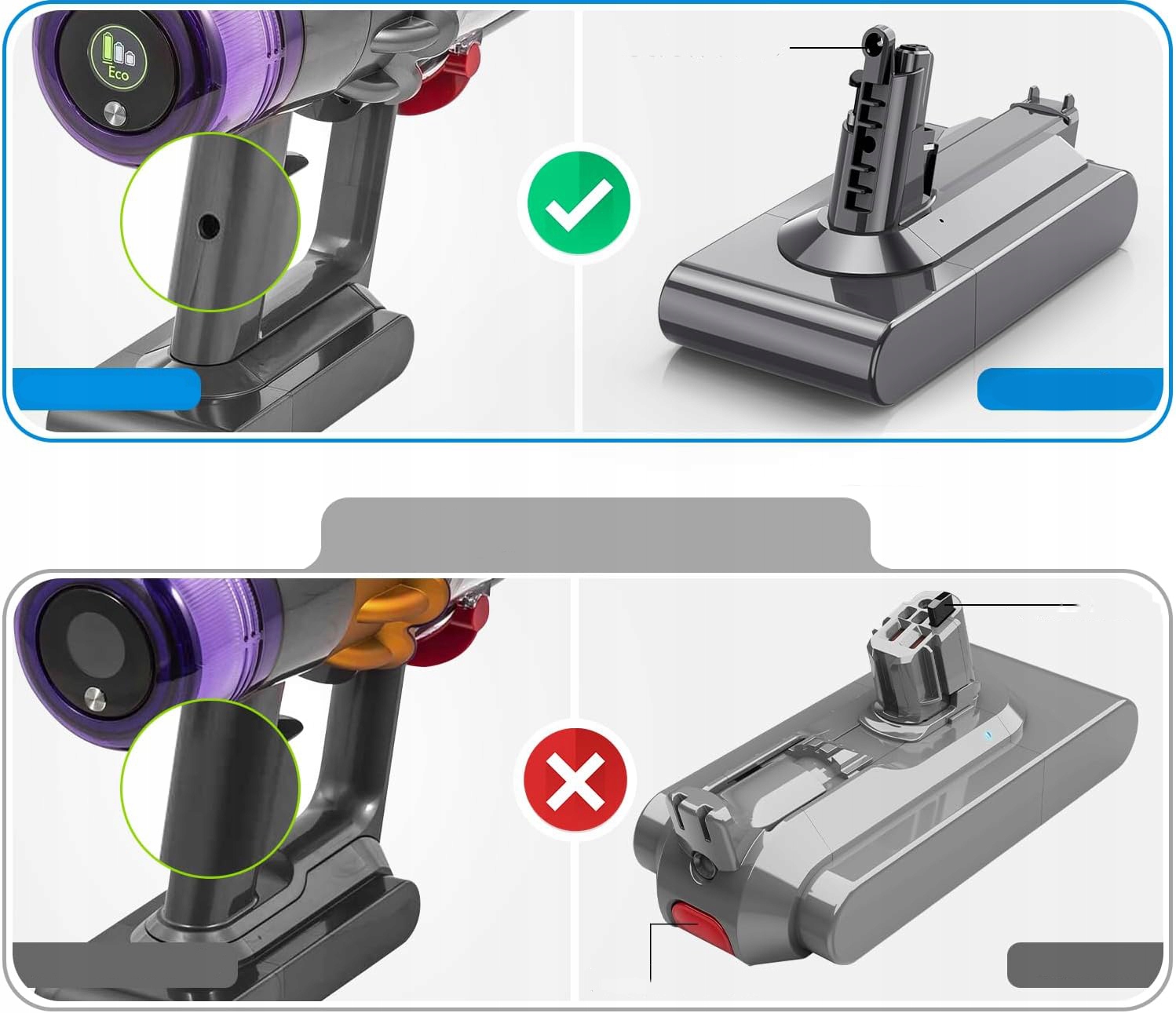 Технічні характеристики батареї: ємність цієї батареї Dyson становить 3900 мАг; напруга: 25,2 В. Після інтенсивного використання зачекайте 5-10 хвилин, поки акумулятор охолоне перед заряджанням, що забезпечує його довговічність. Функція та розмір ідентичні оригінальній батареї.