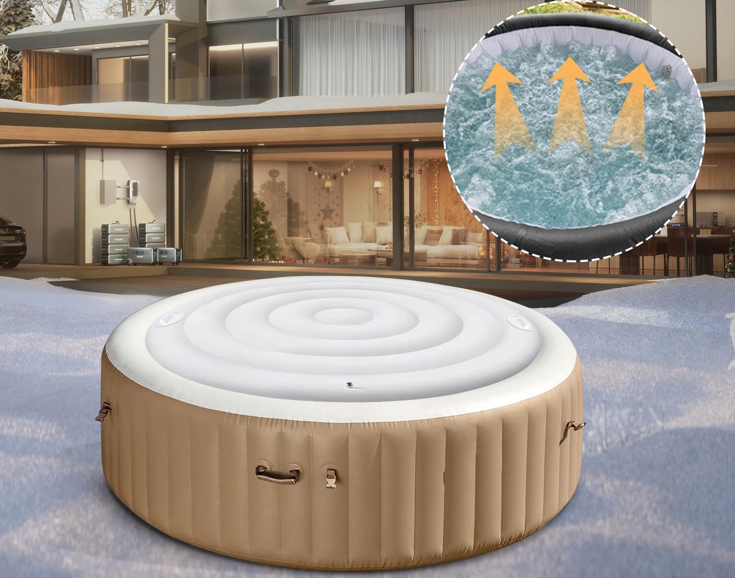 Встановлення кришки надзвичайно просте і не вимагає використання спеціальних інструментів. Просто закріпіть кришку на верхній частині гідромасажної ванни, а посилені ручки з обох сторін полегшать її надягання та зняття. Чохол розроблено таким чином, що його можна швидко накачати та здути, що дозволяє швидко підготувати джакузі до використання. Незалежно від того, чи збираєтеся ви використовувати ванну спекотним літом чи холодними зимовими вечорами, захисний кожух забезпечить вам комфорт гарячої води та збереже її чистотою.