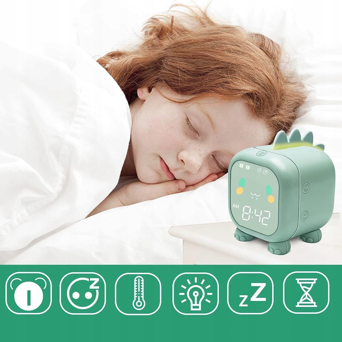 🎁【Ідеальний подарунок】 Милий вигляд динозавра з м’якими кольоровими вогнями робить його ідеальним подарунком для дітей та сімей . Дитячий будильник за замовчуванням налаштований на енергозберігаючий режим, і його можна розбудити, торкнувшись будильника або поплескавши в долоні.