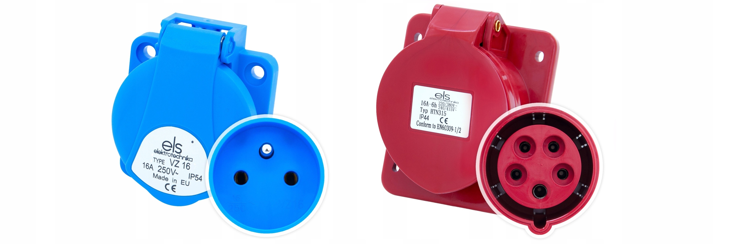 ✅ 2 x Один -фазова суцільна розетка з BOLC 16A 230V IP54 повністю провідна з LGY 2,5 мм2 та Забезпеченим C16 1P ,