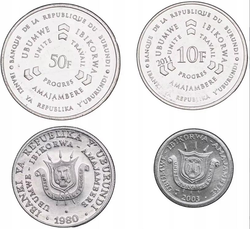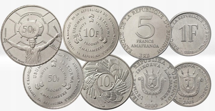 БУРУНДІ 4 МОНЕТИ 1 5 10 50 ФРАНШІВ 1980 2003 2011 UNC