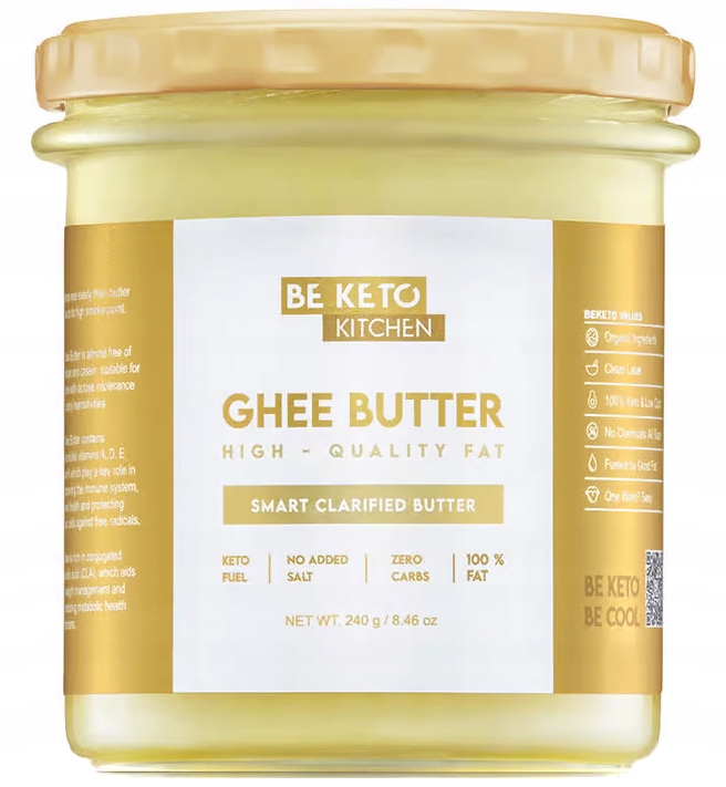 ghee уточнено масло Це ваш секрет унікального смаку та здорового приготування їжі! Незамінний інгредієнт кухні, який підкреслить унікальний смак ваших улюблених страв. Ідеально підходить для смаження, випічки, смаження м'яса, риби, овочів та яєць. Це продукт, який отримує схвалення як досвідчених кухарів, так і любителів смачних страв з низьким вмістом карбогідратів. Бекето уточнена масляна жирна жирна топливість на 100% натуральний і доброзичливий для кето.