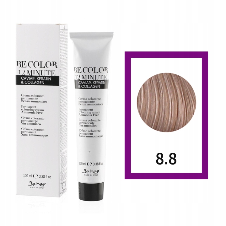 12 хвилин кольору, пристосовану аміанію та ppd. Спеціальна формула BE кольору продукту гарантує максимальну сіру кришку з одночасною повагою до шкіри голови та волосся.