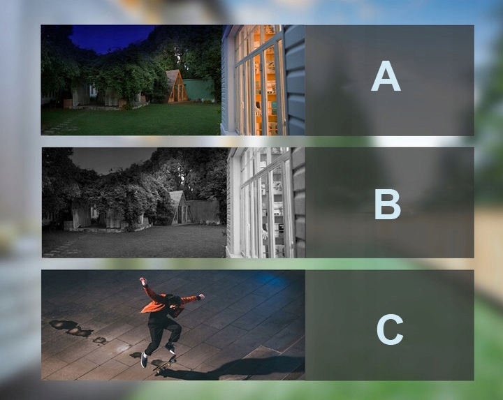C. Розумний -у цьому режимі камера автоматично перемикається з монохромного режиму в кольоровий, вмикаючи фари, коли виявляє людей, що рухаються. Відеозапис тривоги буде здійснюватися в повному кольорі з усією деталізацією
