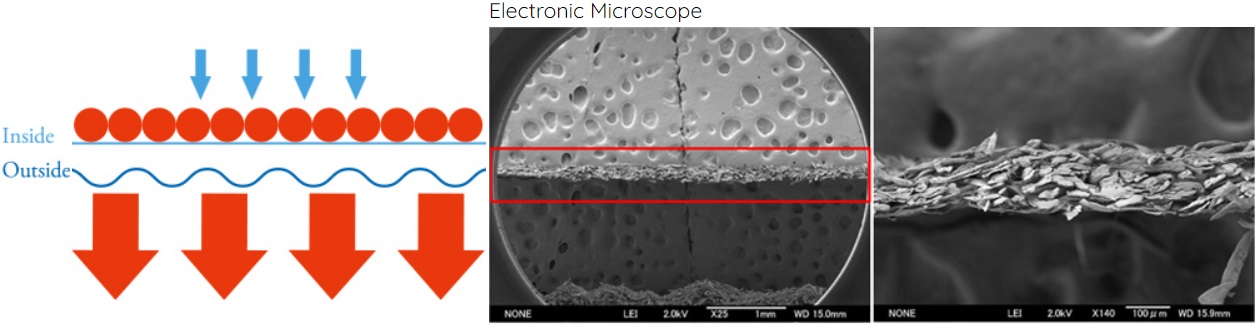 Усередині фільтра немає крепу, тому внутрішня поверхня мала. Маленькі частинки кави прилипають до цієї невеликої ділянки, що створює відносно мало шляхів для проходження води, яка спочатку накопичується всередині фільтра. Збираючи воду всередину, фільтр витягує з кави багато аромату. Завдяки зовнішньому крепу кавовий напій протікає через фільтр дуже плавно та стабільно. Через високу щільність паперу майже всі частинки кави залишаються у фільтрі, тому ви можете насолоджуватися чистим напоєм у своїй чашці.