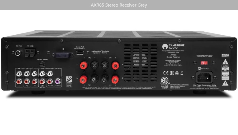 AXR85 забезпечує потужність 85 Вт на канал, має фонопідсилювач для картриджів із рухомим магнітом, передній вхід 3,5 мм для підтримки плеєра iPod/MP3, вбудований FM/AM-тюнер із RDS і 30 попередньо встановлених станцій, і чотири аналогових входи для підключення аудіо/відео пристроїв і аудіоджерел. Крім того, вбудований Bluetooth-приймач дозволяє транслювати музику зі смартфона, планшета чи ПК.