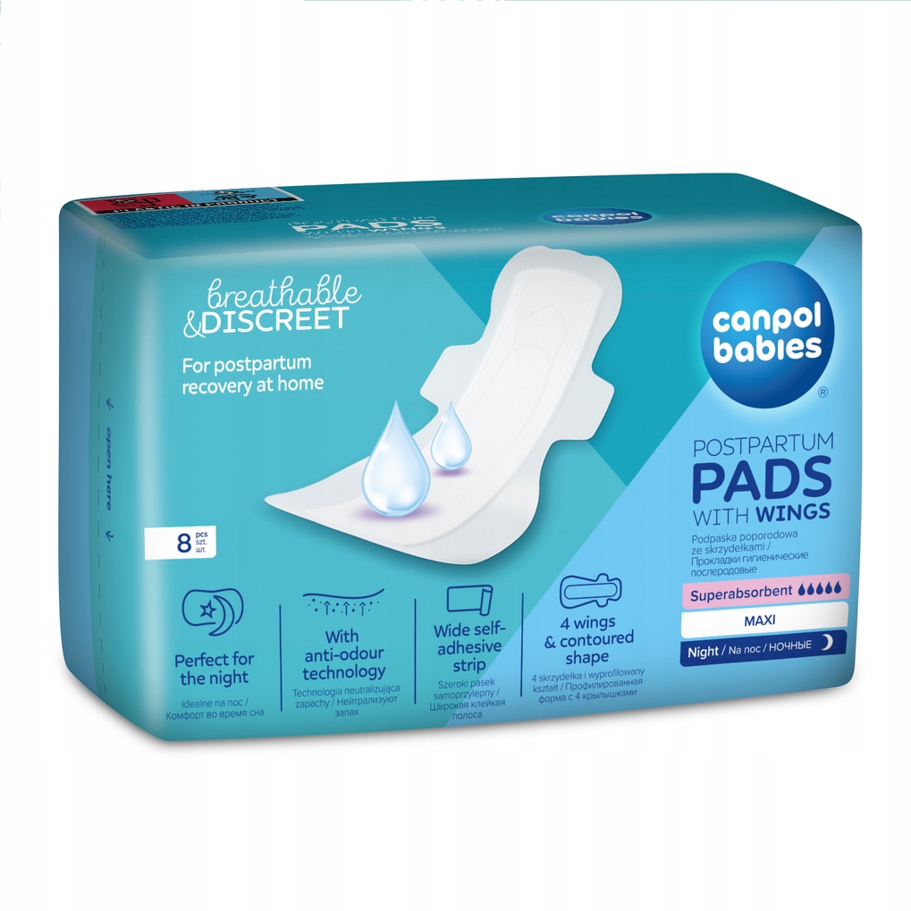 Суперпоглинаючі післяпологові прокладки Canpol babies є ідеальним рішенням для використання вдома після пологів після виходу з лікарні.