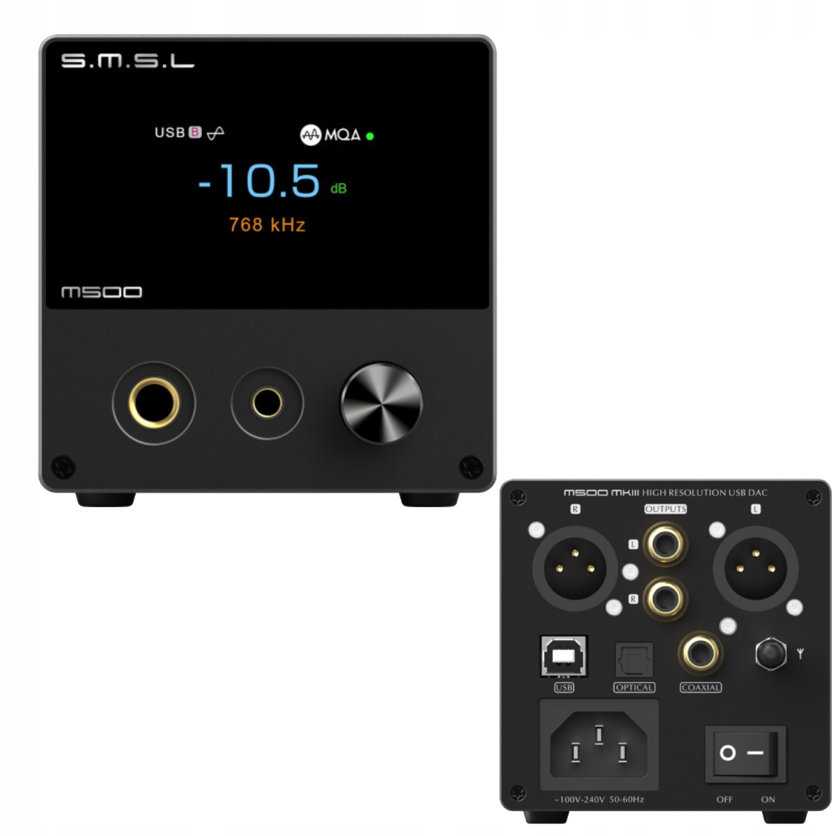 SMSL M500 MK3 підтримує кілька входів, як-от USB, оптичний, коаксіальний і Bluetooth 5.0. Виходи RCA, XLR, 6,35 мм і 4,4 мм для навушників гарантують повну сумісність з будь-якою аудіосистемою.