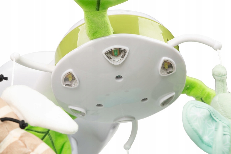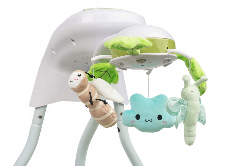 Можливість вибору з п’яти швидкостей гойдалки дозволяє адаптувати рух гойдалки до потреб дитини, пропонуючи делікатне або енергійне гойдання. Таймер дозволяє автоматично вимикати пристрій через 8, 15 або 30 хвилин.