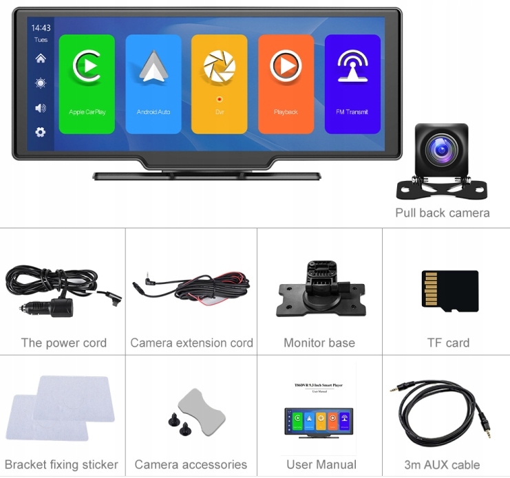 Просматривая «CarPlay Android Auto Автомобильная магнитола A3073 Bluetooth MP5 9 ДЮЙМОВ FM», вы можете быть уверены, что данный товар из каталога «ЖК-панели / ТВ» будет доставлен из Польши и проверен на целостность. В цене товара, указанной на сайте, учтена доставка из Польши. Внимание!!! Товары для Евросоюза, согласно законодательству стран Евросоюза, могут отличаться упаковкой или наполнением.