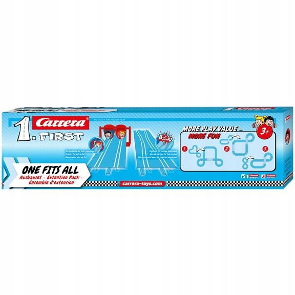 Carrera 1. Перший - це система старту для світу Carrera Racing, створена в масштабі 1:50. Усі набори в цій серії містять контролери, спеціально пристосовані до менших рук молодших дітей. Системи треку надзвичайно прості в встановленні та розбираннях, завдяки унікальній системі засувки. Набори живляться від акумуляторів C (R14) - робочий час до 6 годин. Набори ідеально підходять для водіїв для початківців, які починають свою пригоду з Carrera Tracks.