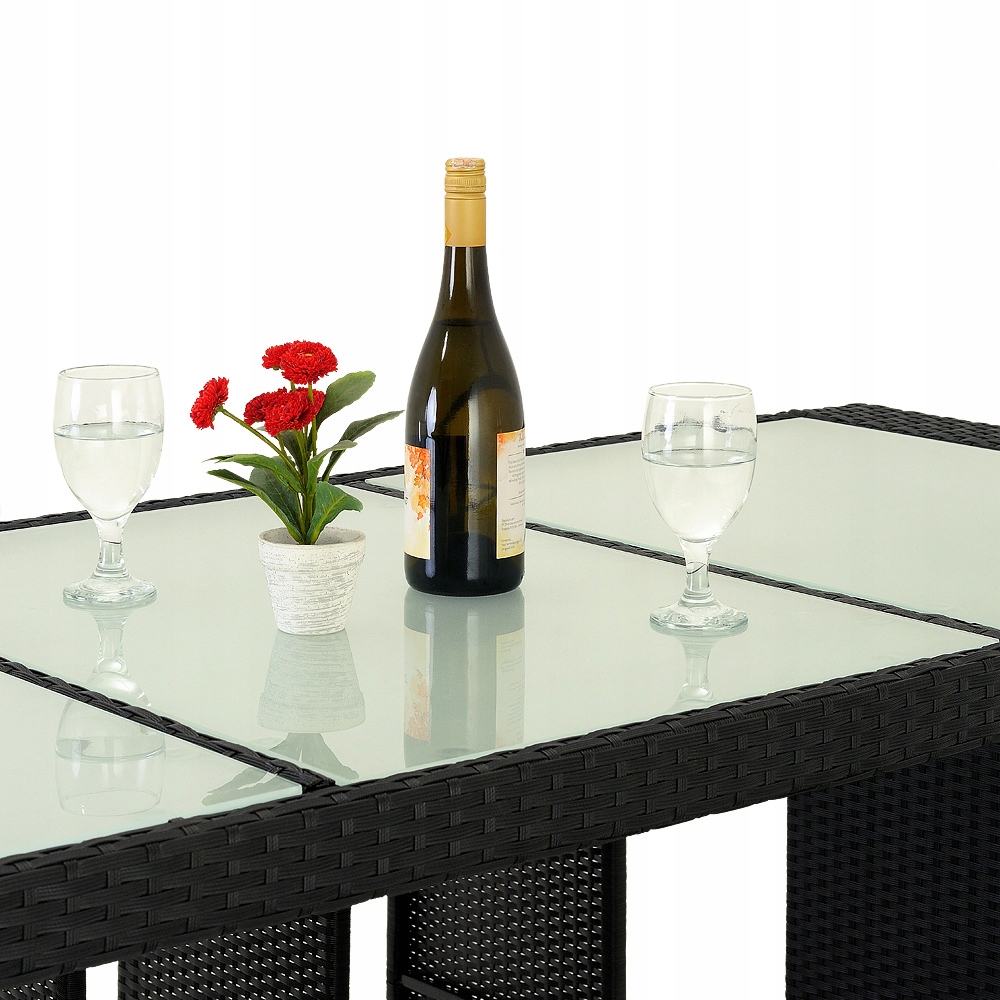 Плетені елементи комплекту для сидіння з поліротангу були спеціально розроблені для садових меблів.
