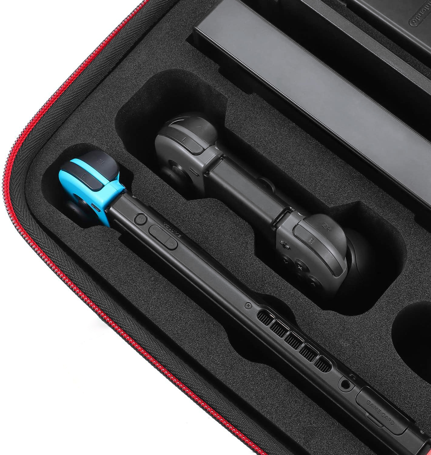 - Дозволяє транспортувати консоль та всі аксесуари (док-станція, колодки, контролер Nintendo Switch Pro, Joy-cons, зарядний пристрій, кабелі живлення та сигналу, ігри, навушники та багато іншого