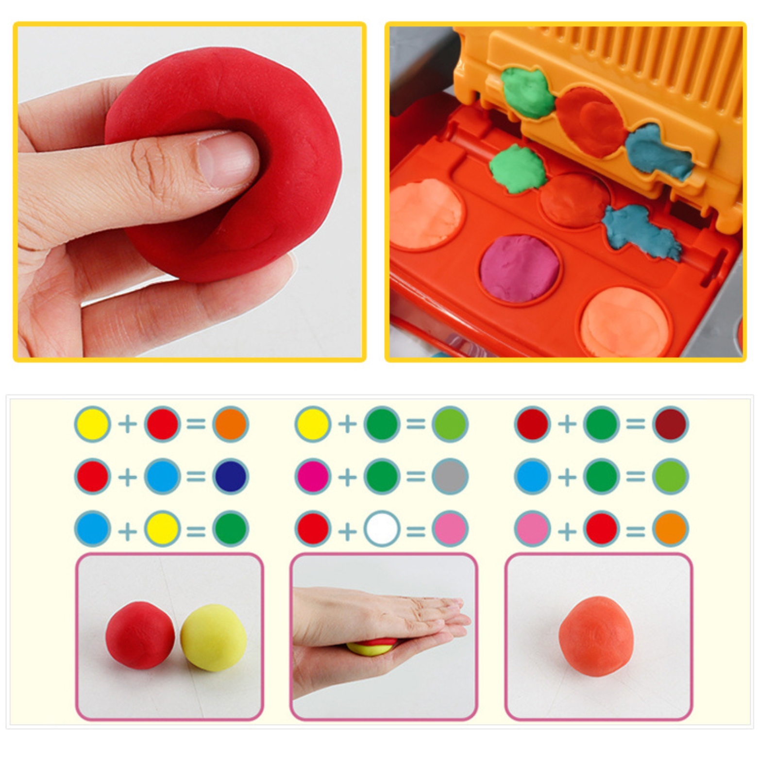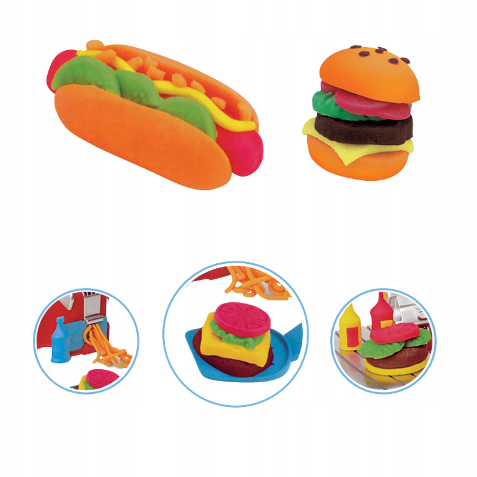Всього в набір входить 5 баночок пластиліну різних кольорів, які імітують різні види їжі для гриля. Завдяки їм дитина може вільно формувати та створювати посуд.