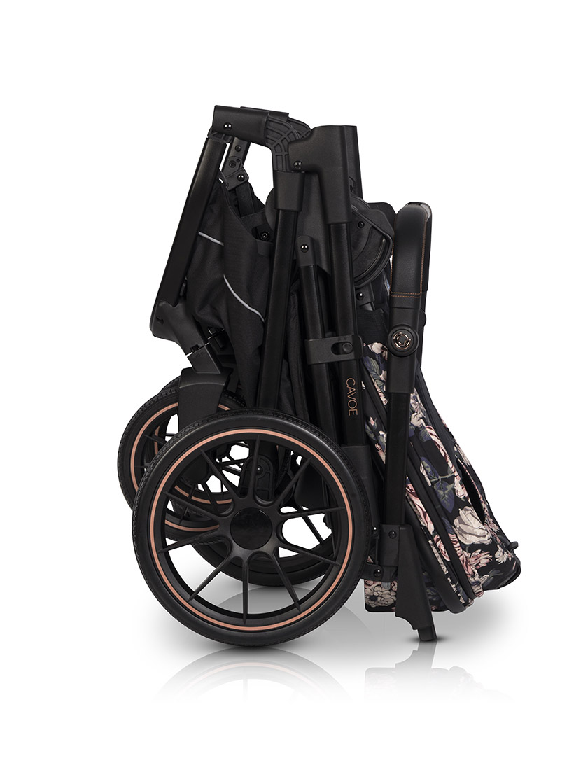 Модель AXO STYLE була збагачена регулюванням висоти направляючої. Ця функція дозволяє як високим, так і низьким батькам комфортно керувати коляскою. Кнопки регулювання напрямних прикрашені елегантними мідними печатками CAVOE, що надає новому AXO STYLE додаткового блиску.