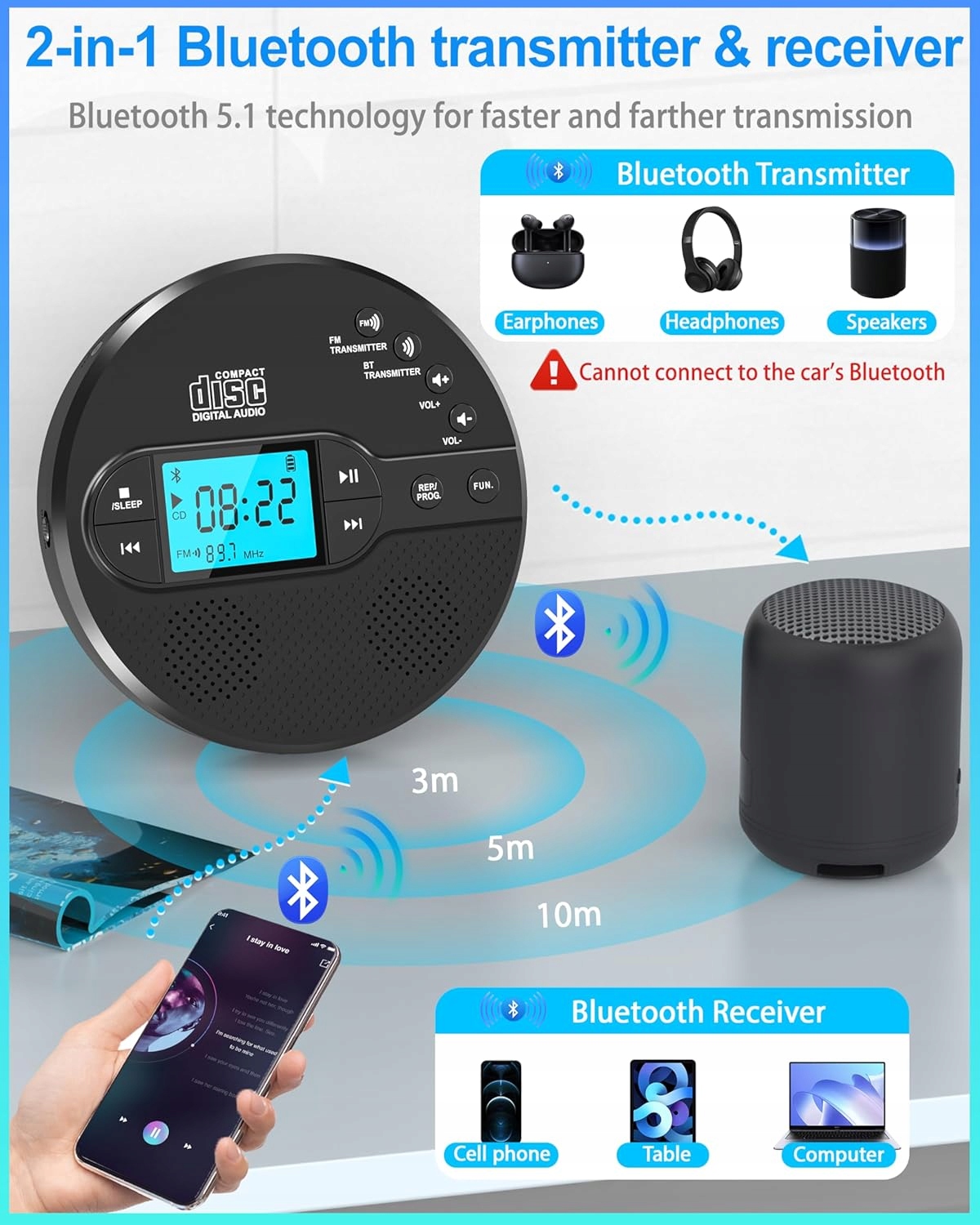 CD -програвач Discman від Bluetooth 5.1 - Музика у ваших пальцях!