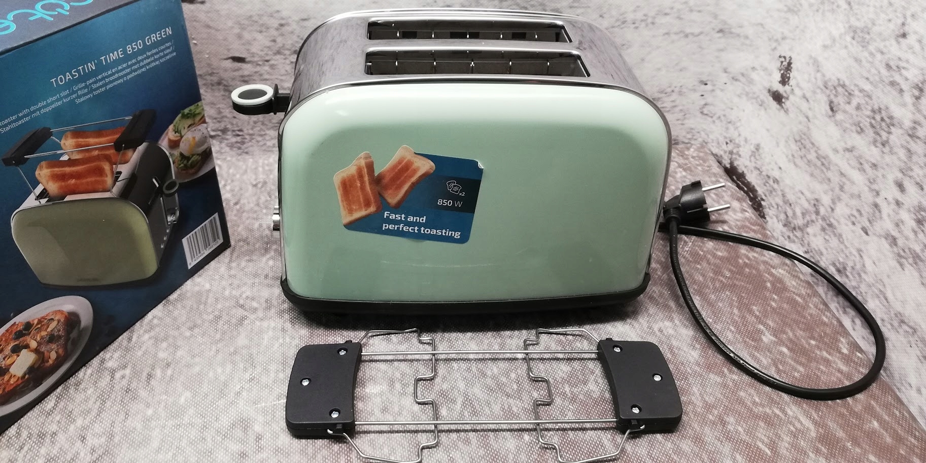 Тостер CECOTEC 850 Green забезпечує рівномірне пропікання хліба з обох боків завдяки центруванню скибочок.