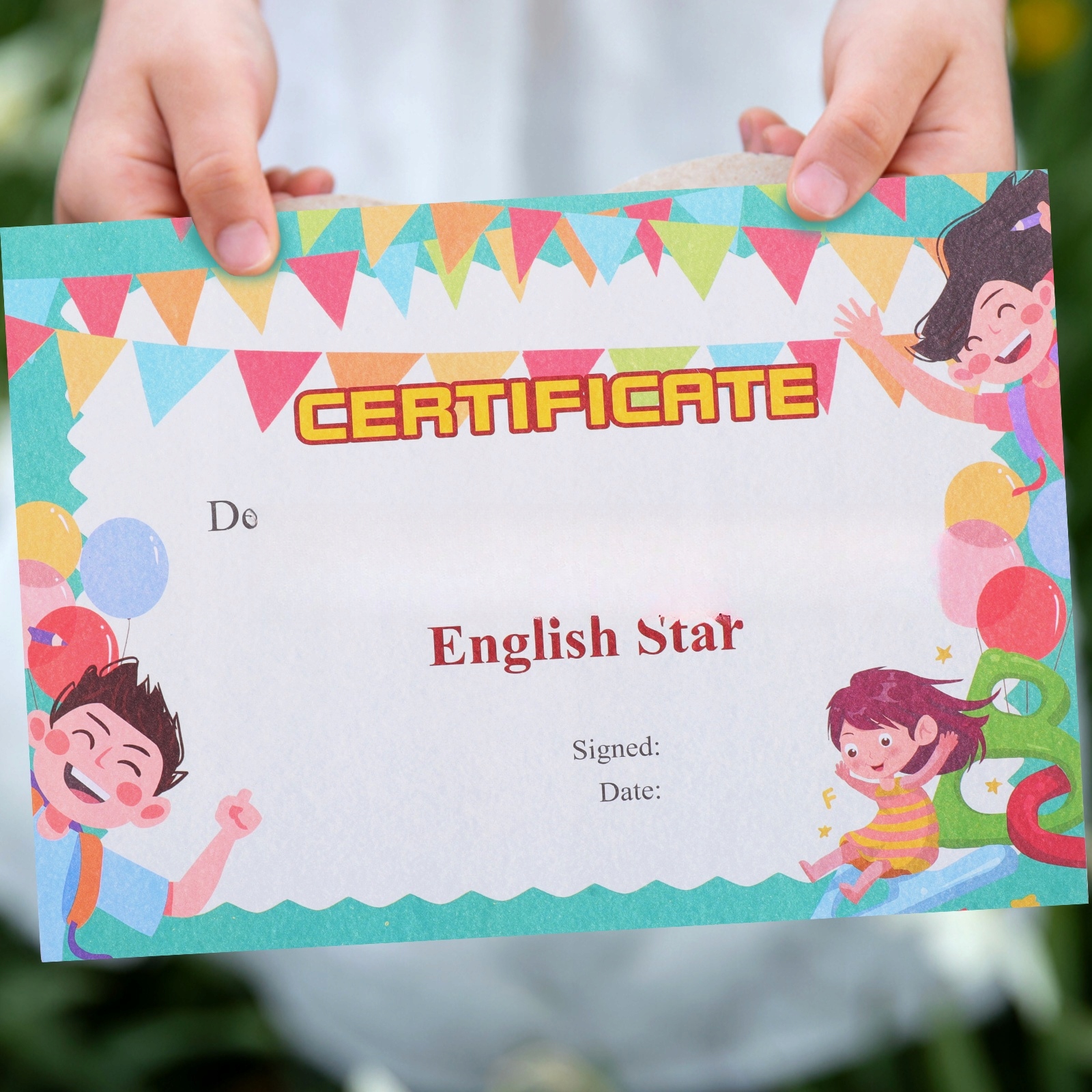 CERTYFIKAT UKOŃCZENIA DZIECI NAGRODA GWIAZDA ANGIELSKIEGO A4