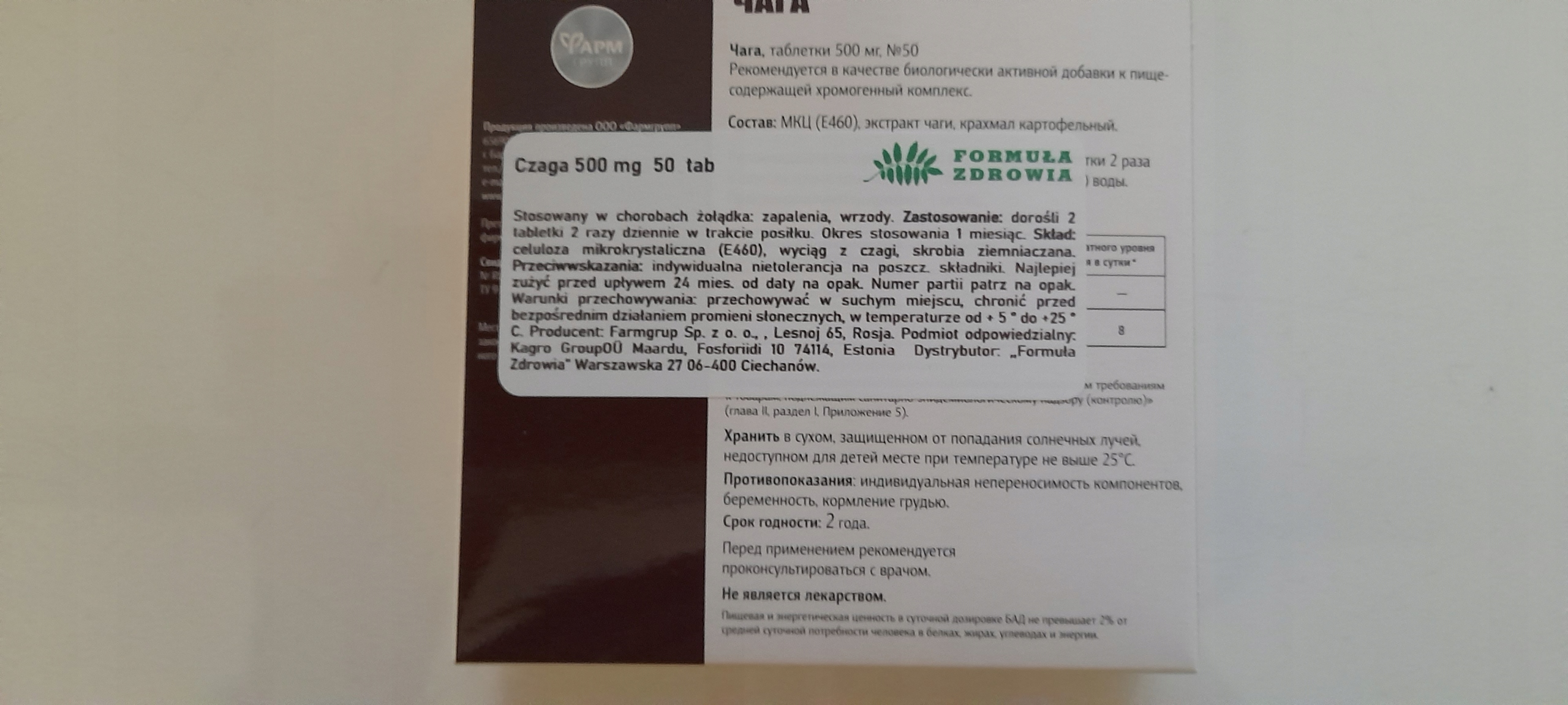 CHAGA Czaga Syberyjska Huba Odporność Ałtaj Farma Farmgrup 50 kap. 500mg