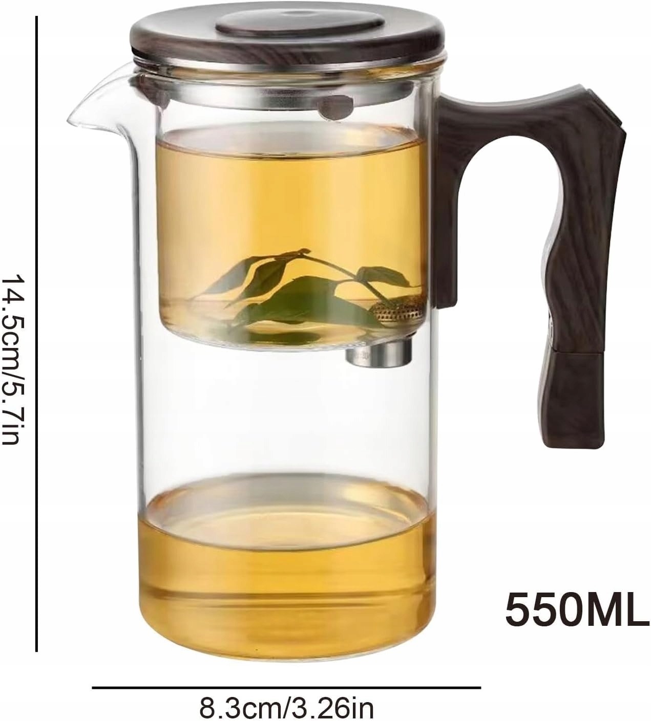 Про цей продукт Інноваційне розливання: легко заварюйте свій улюблений чай за допомогою нашого інноваційного скляного глечика одним дотиком. Просто натисніть на дерев'яну ручку, щоб з силою процідити чай у чайник. Виберіть ще раз, щоб припинити фільтрування та отримати персоналізований напій. Ідеально підходить для зеленого, чорного або квіткового чаю