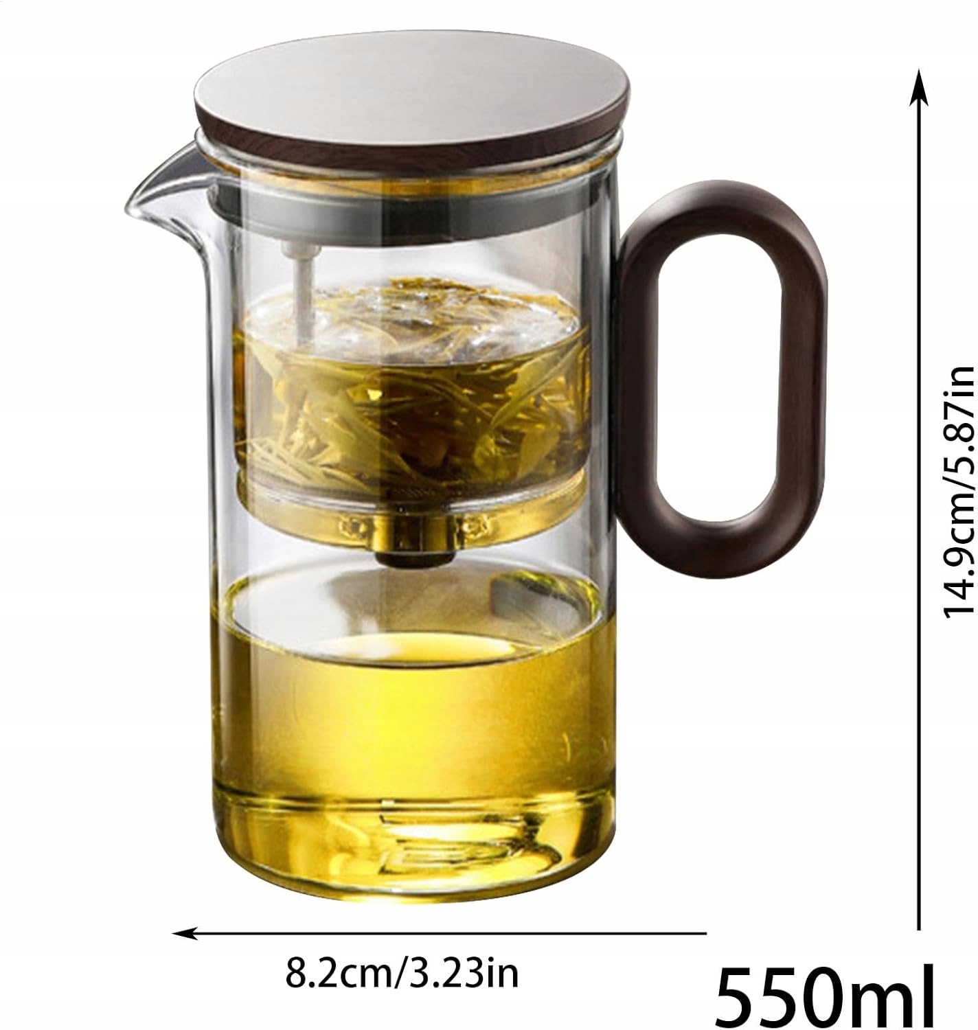 Елегантний і функціональний дизайн: стильна дерев'яна ручка додає естетику, водночас є зручною та термостійкою. Дизайн із прозорого скла дозволяє візуально насолоджуватися кольором напою, що робить його ідеальним як для любителів чаю, так і для гостей.
