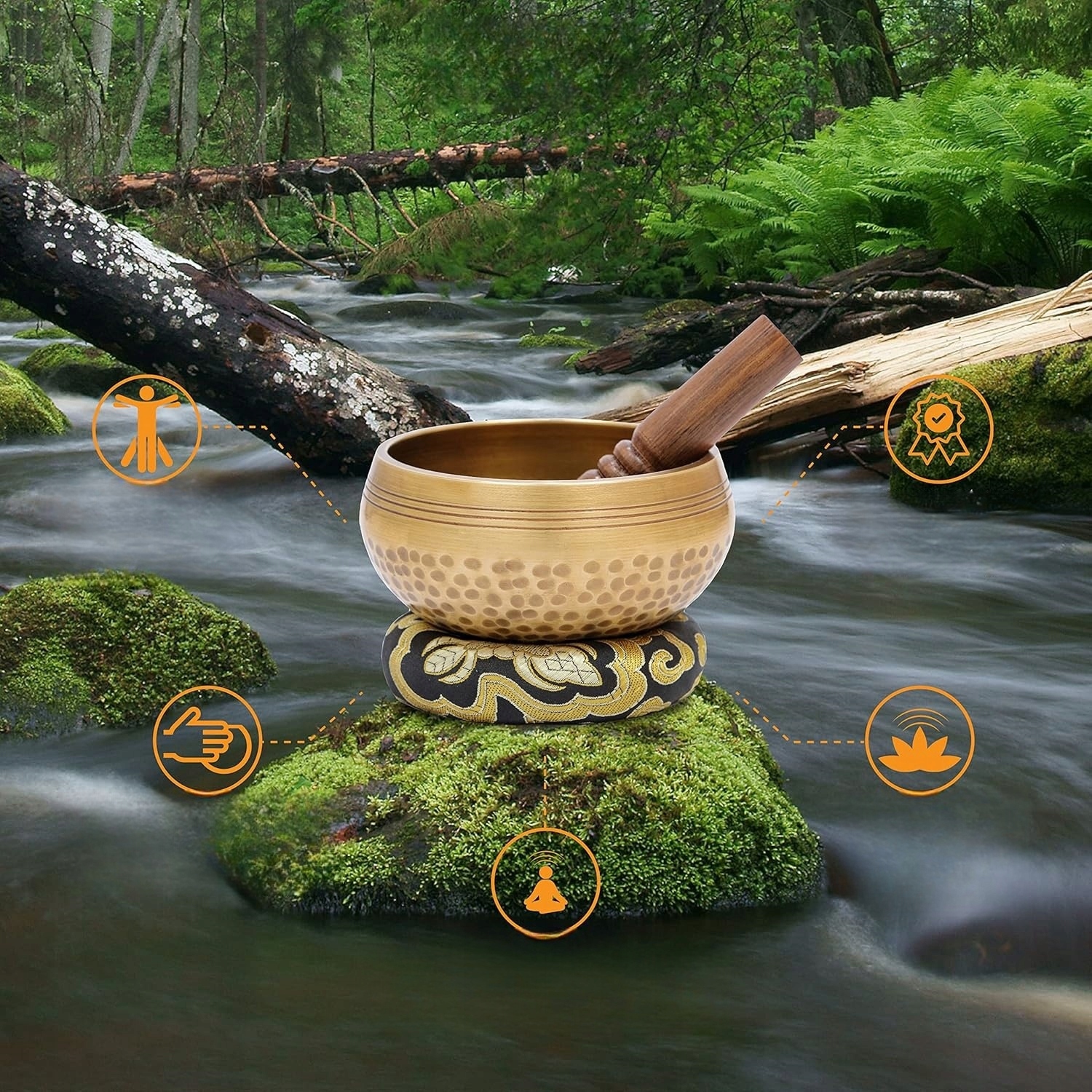 Якщо ви уважно слухаєте, ви відчуєте тонкі коливання та чисту музику і знайдете спокій у своєму серці. Примітка. Не тримайте його занадто багато, інакше це вплине на звук звукової чаші.