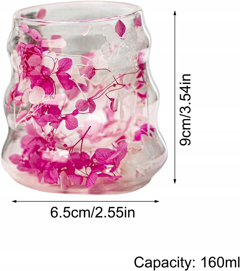 Технічні дані: Назва виробу: сухі квіти з подвійною стінкою Розмір виробу: приблизно 9 x 9 x 6,5 см / 3,54 x 3,54 x 2,56 дюймів Вага: 250 г Матеріал: Ємність: 160 мл Пакувальний лист: 1 чашка для кави Примітка: Вміст поставки: через різні налаштування монітора та світловий ефект фактичний колір виробу може дещо відрізнятися від кольору, зображеного на фотографії. Крок 2: через ручне вимірювання розміри можуть незначно відрізнятися.