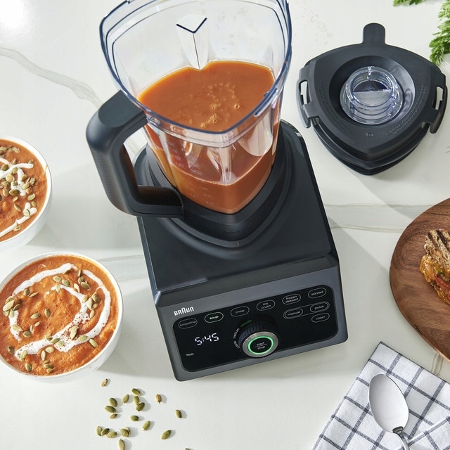 Чашкові блендери Braun із серії PowerBlend 9 — це високопродуктивні кухонні прилади, які запровадили цілий ряд інноваційних технологій. Технологія iTextureControl дозволяє регулювати очікувану кінцеву консистенцію змішаних інгредієнтів - від дрібного до дрібного помелу, а 18 програм дозволяють автоматично регулювати консистенцію в три прості кроки. Технологія TriAction, яка використовується в чашці, забезпечує на 60% точніші та в 4 рази швидші* результати змішування. Блендер забезпечує чудові результати змішування завдяки потужності 1600 Вт, швидкості до 45 000 обертів на хвилину та лезу PrecisionEdge, розробленому та виготовленому в Німеччині, яке без зусиль подрібнить навіть найтвердіші інгредієнти.