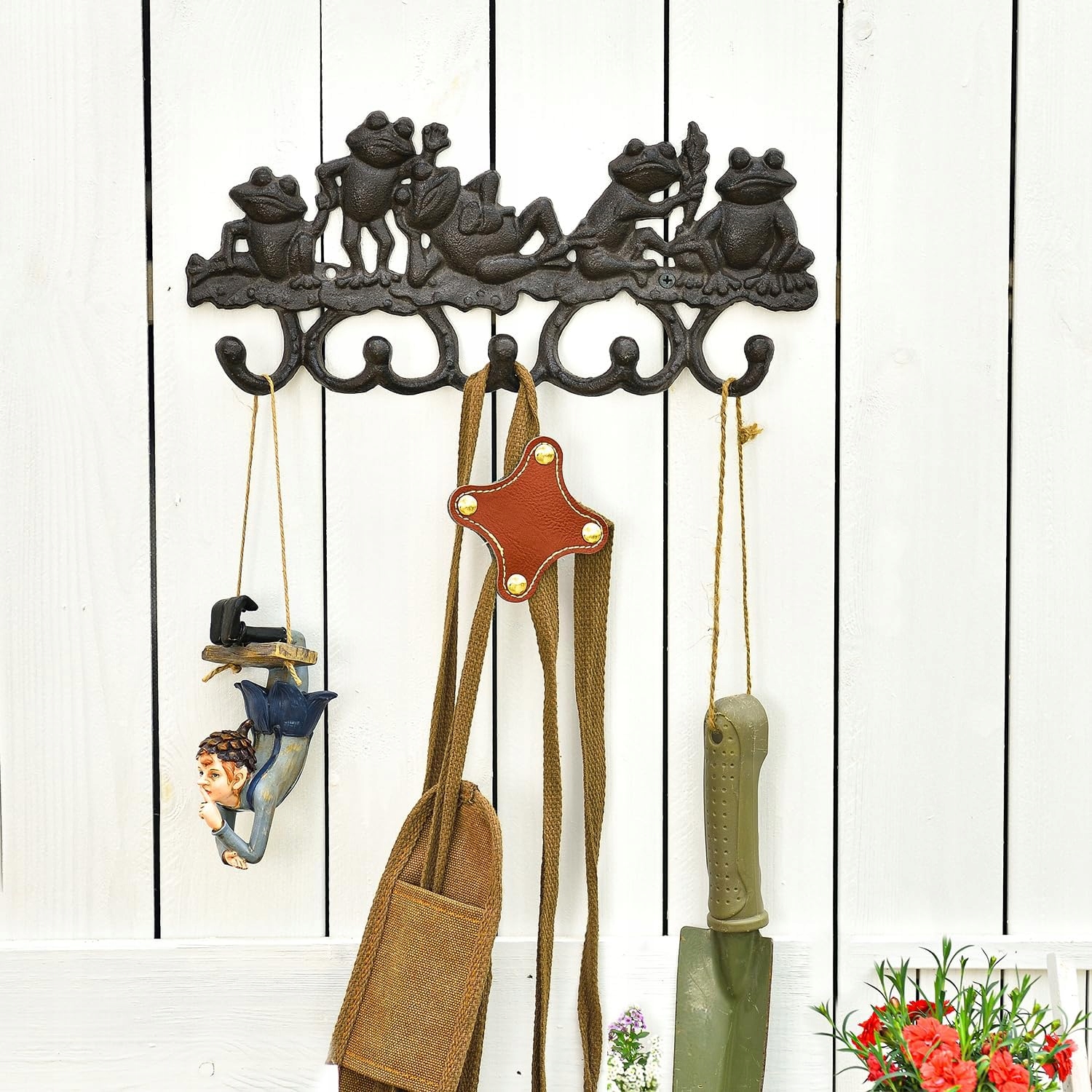 Чавунний настінний гачок Sungmor із 5 гачками, настінний декоративний гачок, красивий тримач для жаб, настінний декор для внутрішнього та зовнішнього середовища, чудово підходить для ручних інструментів, рослин, пальто, капелюхів, ключів, одягу