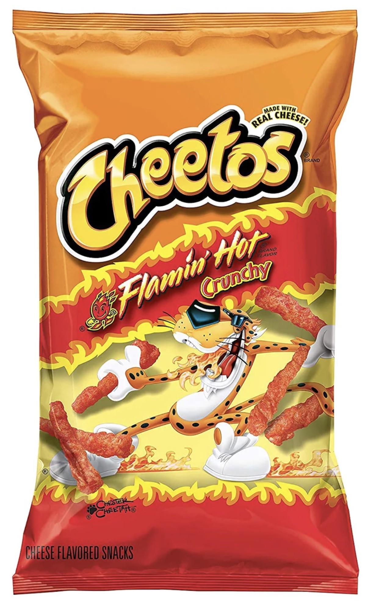 Flamin' HOT Cheetos, безсумнівно, є однією з найбільш продаваних закусок у США. Після введення свого імені в Google одразу з’являться статті на зразок «23 ознаки безнадійної залежності від Flamin’ HOT». І не дивно, вони дуже смачні, і їх важко перестати їсти. Варто також відзначити, що вони виготовлені з кукурудзяного борошна, що, безсумнівно, забезпечує неповторний смак.