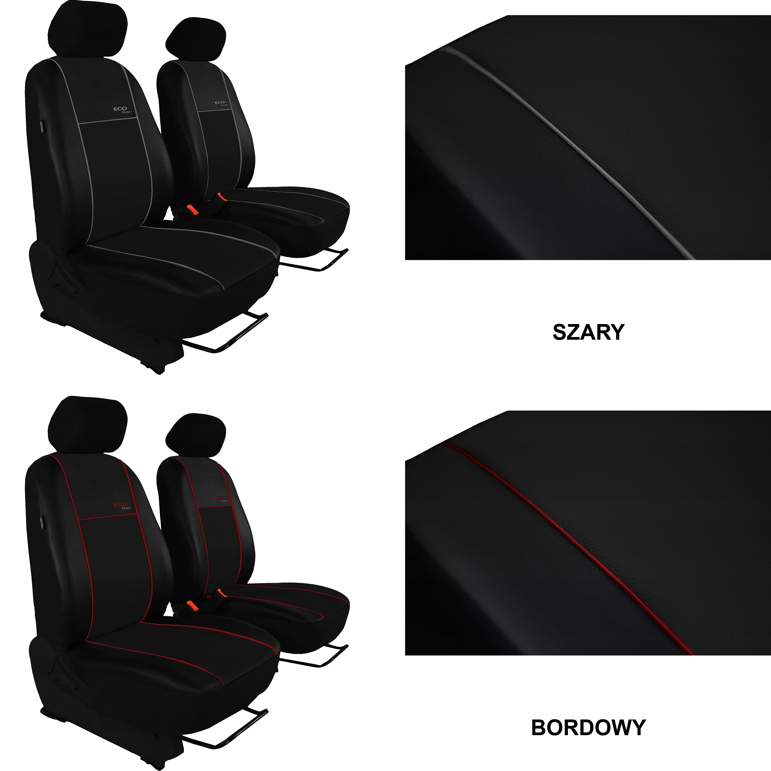 Наші чохли Eco Line повністю покривають сидіння. Передня частина (спинка і сидіння) виконана з екологічної шкіри. Спинка, підголівники і бічні частини чохлів виготовлені з міцного чорного матеріалу. Завдяки цьому рішенню оригінальна оббивка сидінь захищена від пошкоджень і бруду в найбільш відкритих місцях.