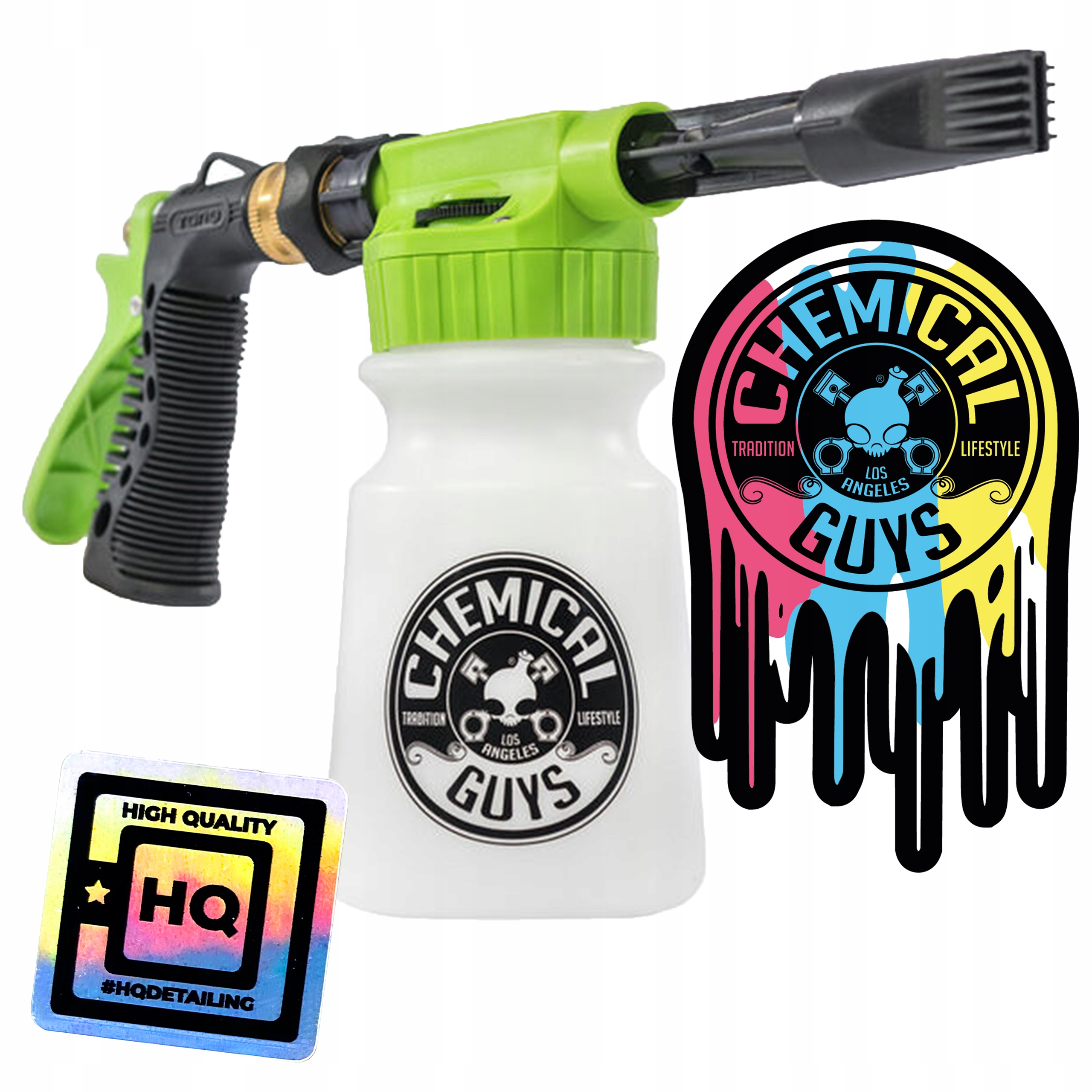 - 1 шт. CHEMICAL GUYS TORQ FOAM BLASTER 6- це пінний пістолет, підключений до садового шлангу. Вам не обов’язково мати дорогу мийку високого тиску! Просто приєднайте піноструйник до садового шланга, поверніть ручку, і піна вилетить і покриє вашу машину!