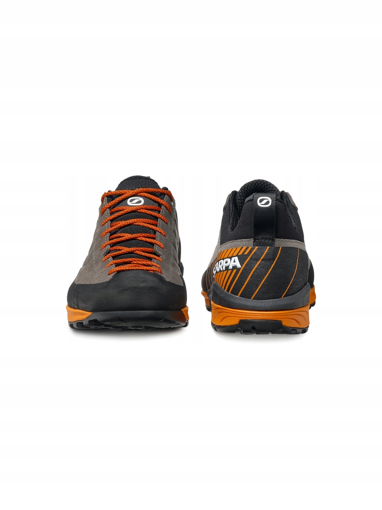 Технологія Scarpa 37.5, використана в моделі Mescalito, відповідає за те, щоб ноги відчувають себе свіжими та сухими, а антибактеріальна устілка Ortholite блокує утворення неприємних запахів. Властивості взуття Scarpa Mescalito titanium/mango: - взуття, призначене для трекінгу, походів і феррат. із замшевої шкіри товщиною 1,8 мм - заводське просочення, що захищає верх від водопоглинання - підсилення навколо нижньої частини верху - посилений гумою носок взуття - легка клейка підошва Dynamis LB на основі гуми Vibram Megagrip - амортизуюча проміжна підошва з Піна EVO - технологія Scarpa 37.5 забезпечує сухість і свіжість всередині взуття - антибактеріальна устілка Ortholite, яка блокує неприємні запахи